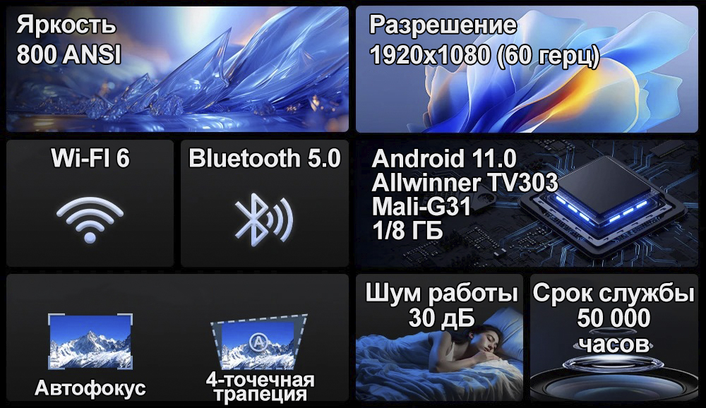 Хороший вариант для создания домашнего кинотеатра благодаря матрице 1080p и яркости 800 ANSI, с возможностью подключения внешней акустики/наушников по Bluetooth 5.0. Встроенный Android 11.0 позволяет устанавливать любые приложения - Фильмы/Сериалы/IPTV/Спортивные телеканалы/Игры (Sony PlayStation 1, Super Nintendo, SEGA Mega Drive 2, Nintendo 64, Dendy, Game Boy Advance, DOS и т.д.) - БЕСПЛАТНО!