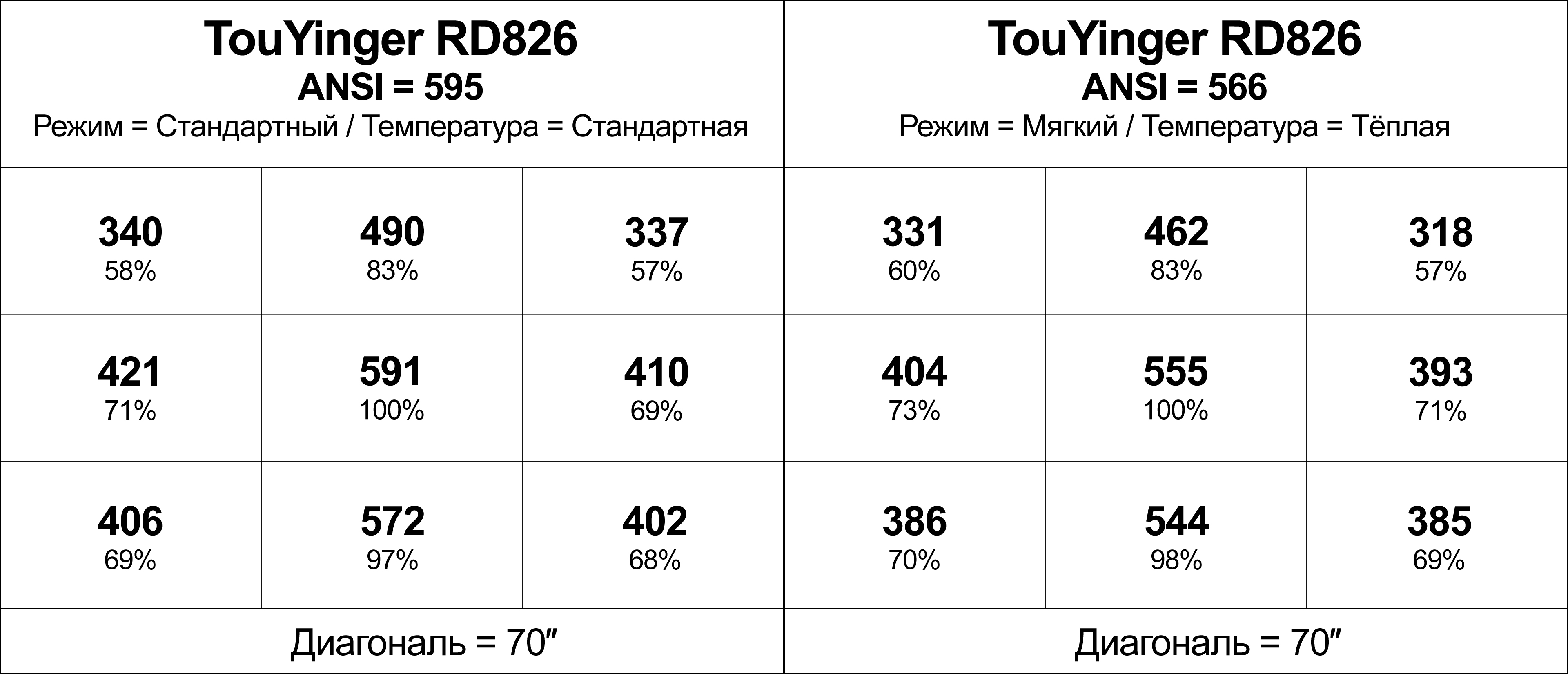 ANSI яркость (Фактическая)