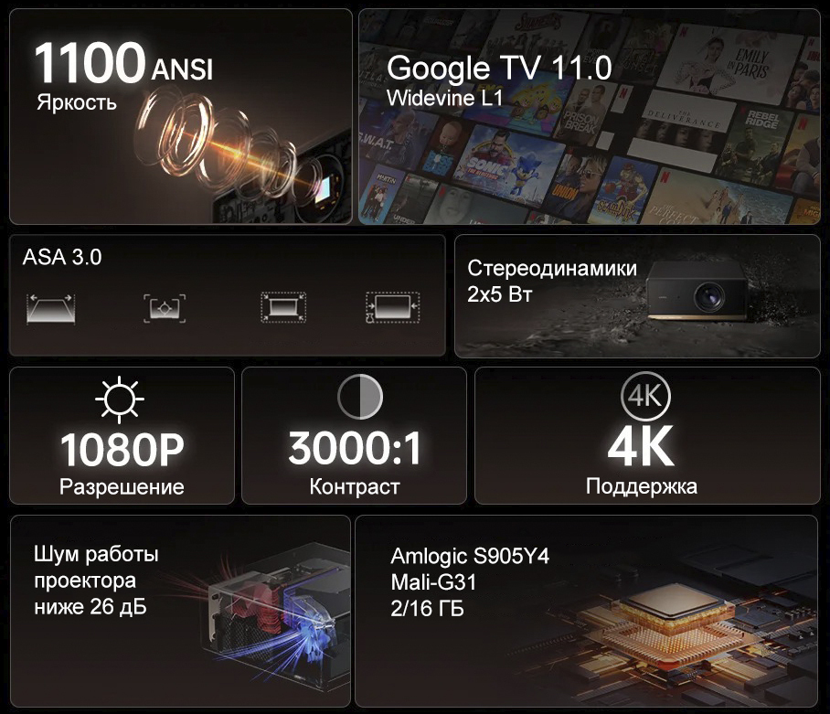 Проектор от известного бренда Wanbo со встроенным сертифицированным Google TV 11.0! Хороший вариант для создания домашнего кинотеатра благодаря матрице 1080p и яркости 1100 ANSI, с возможностью подключения внешней акустики/наушников по Bluetooth. Встроенный Google TV позволяет устанавливать любые приложения - Фильмы/Сериалы/IP TV/Спортивные телеканалы/Игры (Sony PlayStation 1, Super Nintendo, SEGA Mega Drive 2, Nintendo 64, Dendy, Game Boy Advance, DOS и т.д.) - БЕСПЛАТНО!